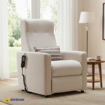 Modern riser recliner with clean-lined styling, easy-grip arms, and a fixed back for controlled support. Comfortable, practical, and easy to live with.