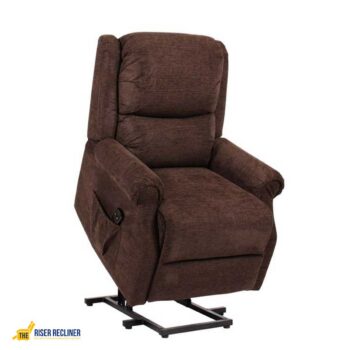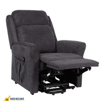 Dual motor recliner chair with near-flat recline, gentle rise function, quiet motors and padded comfort. Available in Chocolate Brown or Graphite Grey with battery back-up system.